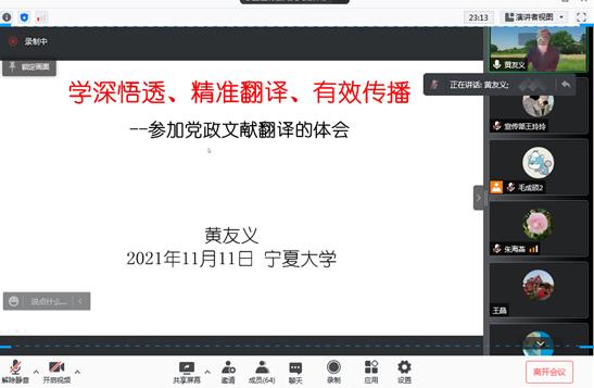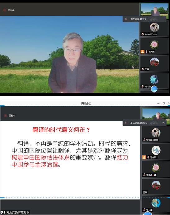 2021年11月11日下午2:15,中国外文局前副局长黄友义老师在成人抖阴