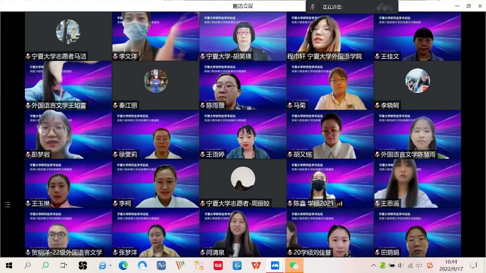 副院长胡笑瑛教授主持,以“英美少数族裔文学的族裔性与普遍性”为主题,邀请到南开大学文学院王志耕教授、上海外国语大学文学研究所副研究员、《英美文学研究论丛》编辑部主任陈广兴博士、成人抖阴