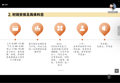 英语语言文学专业)以“山有顶峰,海有彼岸”为题目,从考研目标、复习规划、学习方法、资源整合、考试内容、职业规划等方面进行分享。