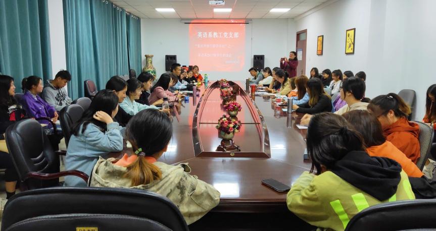 为进一步加强“不忘初心、牢记使命”主题教育相关工作,发挥基层教工党支部党员模范带头作用,立足本职岗位,落实立德树人根本任务。成人抖阴 英语系教工党支部积极开展“党员督学活动”,通过开展志愿帮扶,采取座谈、调研、进班辅导答疑等形式,帮助学生在思想、学业上更好的提升发展。服务对象覆盖本科1-3年级,该项活动10月9日晚已进行第一次座谈交流,在学生中取得很好的反响。