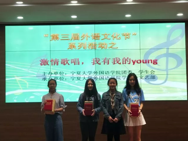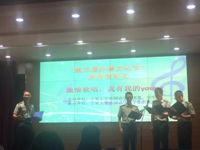 403报告厅举办“第三届外语文化节”系列活动之“想唱就唱,我有我的young”外文歌曲大赛决赛。
