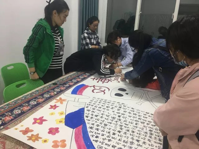 活动首先由禁毒代表为同学们普及毒品知识,详细介绍了毒品的品种、分类以及危害并向同学们发出倡议——希望他们能够在接下来的生活中深入思考、体会禁毒的重大意义。其次各班文体委员组织同学们商定板报内容、设计及分工。在板报制作过程中,班级各位成员积极谏言献策,共同商定板报样式和板报内容,同时发挥自己的长处为板报的制作贡献力量。