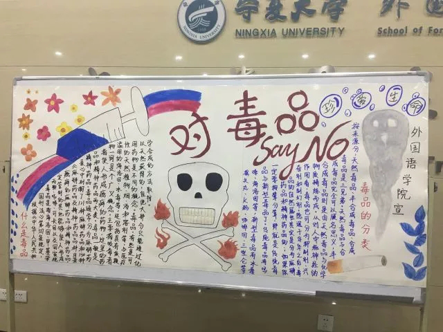 于2018年5月10日,组织同学们开展了禁毒系列活动之禁毒板报设计活动。目的是让同学们了解常见毒品的种类、毒品对身心及社会的危害并教导同学们如何自我保护、如何抵制毒品的诱惑。
