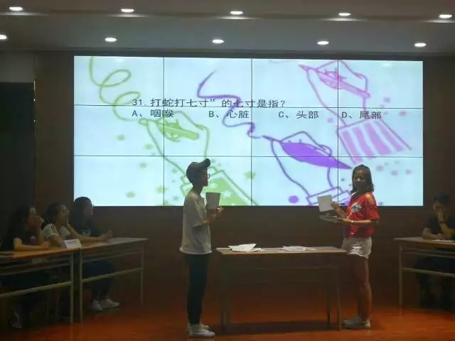 在决赛的现场,各参赛团队及选手反应迅速,竞相出展现出丰富的百科知识,正答率极高,难分伯仲。选手们充分运用自己的语言表达能力,密切配合,将比赛一次次推向高潮。