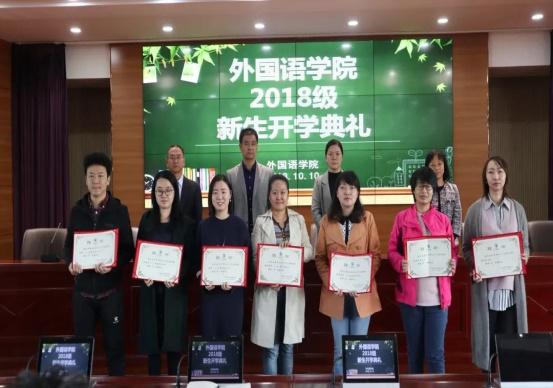 下午四点整,全体人员起立,奏唱国歌。会议伊始,党委副书记余洁介绍了出席开学典礼的领导。随后,赵晓佳副院长宣读关于《聘任金丽华等八名教师为2018级本科生班级兼职班主任的决定》并且由学院领导向兼职班主任颁发聘书。
