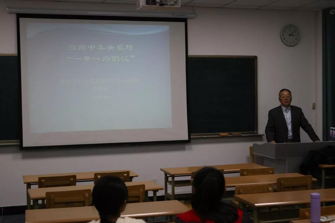 在致远楼314教室举办了庆祝建校60周年“学术校庆”系列讲座之“中美大国关系的构建与一带一路倡议”专题讲座。主讲人为南京大学博士研究生导师、中美文化研究中心副主任蔡佳禾教授.