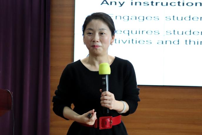 张露露老师结合她在四川大学多年的课堂教学改革实践和探索经验,通过大量鲜活的教学案例,以《英语写作》小班讨论课为参照,分享了在课堂教学中如何以学生为中心、提升课业挑战度、促进学生学习的经验和方法,提出了关于外语教学改革的一系列具体方法和措施。她认为课堂教学模式要实现从“以教为中心”向“以学生发展为中心”的转变。参加此次报告会活动的自治区教育厅王春秀副厅长为报告会作了精彩点评。报告会之后,张老师与各高校教师们进行了充分的交流。