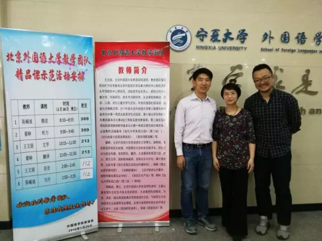 3月30日北京外国语大学的陈掘斌、王文丽和翟铮老师分别走入17级、16级和15级的课堂中,为各班同学讲授了专业核心课《基础英语》、《语音》课,语言技能课《写作》、《听力》课和专业必修课《文学》、《翻译》课。《基础英语》课上,陈老师将大家带入公元前 4世纪亚历山大国王和古希腊哲学家戴奥吉尼斯的会面中,并引导我们对比两位伟大的历史人物在装扮、性格,思想等方面的不同,使大家对犬儒主义有了深入的思考。王老师在《语音》课上,选取了许多贴近生活的音频、影视素材,还融入了儿歌、游戏等教学方法,即简单、有效地训练学生掌握了重读、节奏和连读的要领,分析了汉语的负迁移问题,还讨论了诗歌的主题巧妙地融入在韵脚中的规律及特点。