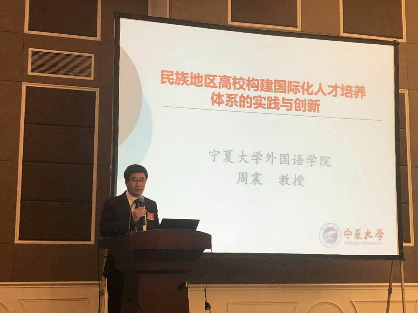 周震院长和其他来自全国的十一位知名专家学者应邀参加了高端论坛的“基于院校特色的国际人才培养”专题论坛并在论坛上作主旨发言。该论坛紧紧围绕国际人才培养,从课程体系设计,专业特色打造,学校国际合作等方面进行了专项研讨。论坛分上下两场,分别由北京外国语大学韩宝成教授和张剑教授主持。 周震院长以如何在区域高校构建国际化人才培养体系为主题探讨了宁夏高校近些年来所做出的实践与创新。分享了成人抖阴