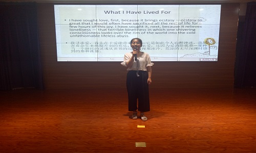 赛前,赵晓佳老师以亲身经历诠释了诵读诗歌的意义、举办朗读比赛的作用。诗歌作为文化经典,传承着历史文化与时代内涵。当同学们以准确的语音、语调诵读作品时,能真切体会到语言的优美,并激发学习语言的乐趣。举办朗诵比赛,让外文经典回归校园,彰显现代大学生的朝气与才华。