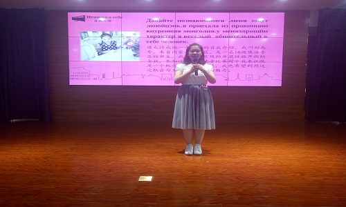 比赛分为两部分。第一部分是自我介绍及朗诵内容介绍,通过中外文字幕的PPT或视频展示;第二部分是自备稿件朗诵并讲述,内容可与初赛朗诵内容相同。参加比赛的11组选手主要是2015级、2016级的英语专业、俄语专业、日语专业学生,他们或一人深情朗诵、或两人小组合作,所展现的作品语种丰富、形式多样、内容充实、情绪到位。