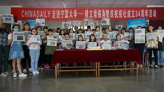 学子共同庆祝中国日报34周岁生日。