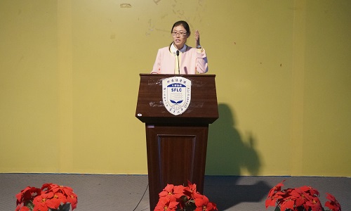 随着主持人宣布赛制,演讲比赛也正式拉开了帷幕。郭季红、金丽华、文莉、唐玲、宋晓龑五位老师担任本次比赛的评委。此次比赛涵括定题演讲、即兴演讲以及现场答问三个环节,每位选手进行两分钟以庄子的《无用之用》为主题的定题演讲,一分钟的即兴演讲,以及回答由Dale De Weerd和Anna Scianna两位外教针对演讲内容提出的问题。