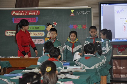 培训团队带领下到实验小学实地观摩了两节真实的课堂。做课教师:冷谨和宋艳萍老师在历年的区,市级的各种比赛中都获得了佳绩。她们分别讲了外研版(一起)五年级(上)和三年级(上)的课程。她们流利的口语表达,清晰的课堂指令,巧妙的活动设计,连贯的教学环节,娴熟的多媒体运用给我们的学员留下了深刻的印象。特别是生生活动中,两位教师有效运用自己制作的教学材料,结合音频和视频切实帮助学生掌握重点句型,并通过情景演练内化教学重点,课堂效果好,学生参与度高,知识掌握好。课下,国培学员围住两位教师询问教学模具的制作,音频视频的制作,教学活动的设计等问题,两位老师给予了悉心解答。本次观摩是国培课程理论和实践结合的有效践行,促进学员直观了解优质课堂的模式,帮助教师反思自己的教学的有效途径。