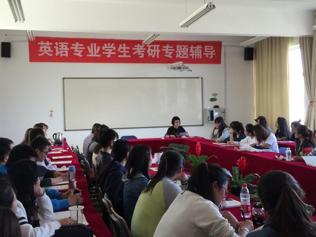 胡笑瑛老师以“让生命开出更美的花——英语专业考研辅导”为题目,以“为什么考研”、“如何将现实学习与职业规划相结合”、“如何寻找刻苦学习的动力”等问题为导语,引发学生的思考。在阐述完考研的意义后,胡老师详细讲解了报考成人抖阴