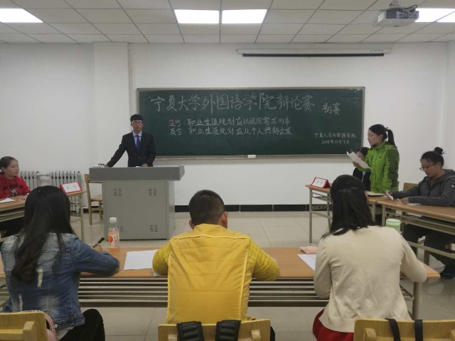 首先,正方辩手胸有成竹,气场强大,不断强调社会需求对大学生职业生涯规划的重要性。随后,反方对手也不甘示弱,找对方的漏洞进而重申己方论点,侃侃而谈。在随后的自由辩论中,现场气氛尤为浓厚,辩手们秉持“来而不往非礼也”的原则,唇枪舌剑,金句频出。赛况激烈,台下观众掌声如雷。在最后的总结陈词中,辩手们放沉了嗓音,针对己方论点谈古论今,引经据典,认真总结。