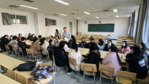 俄语词汇大赛采取积分制、团队回合比拼模式,通过解谜填字、“你说我猜”、“雪球”造句、台词复述等环节多样化考验了学生的听说读写译能力。期间两个团队都很好地发扬了团队合作精神,携手互助,过关斩将,愈渐欢乐的气氛和高昂的情绪在决胜盘的掌声中到达了顶峰。