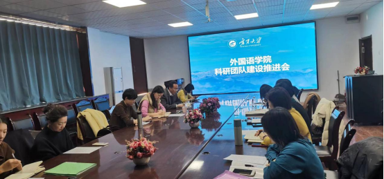 科研团队建设工作推进会。学院全体班子、科研团队负责人、科研团队咨询专家、外国语言文化研究中心负责人等参加推进会。会议由学院分管科研和学科建设工作副院长金忠杰主持。