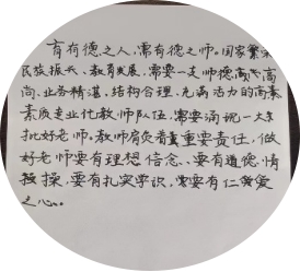 钢笔字、毛笔字、粉笔字和普通话是师范生的基本技能之一,是教师从业的基本功。教师的字写得是否工整美观,普通话是否标准规范关系到学生的语言、文字水平。本次比赛为师范生提供了同场竞技、取长补短的平台,今后学院还将进一步加强师范生“三字一话”训练,更广泛,更常态地让同学们参与进来,切实提高技能,提升综合素质。