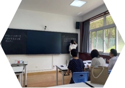 比赛第二项“粉笔字书写”在逸夫楼103教室进行,要求在5分钟内完成20个指定文字的书写(楷书或行书)。粉笔字书写由李庆凤、季春燕和郭海英三位老师担任评委。选手们使用规范汉字,书写工整,笔画清晰,大小适中,字形规范。