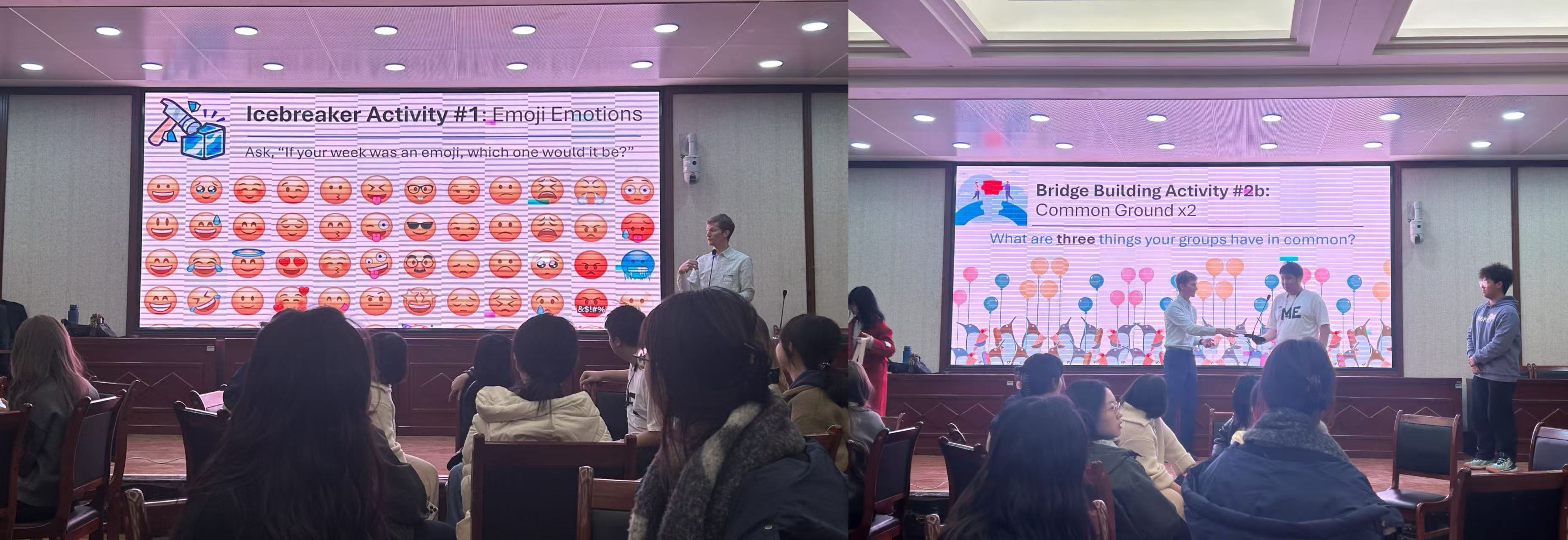 于2025年3月14日晚7点在逸夫楼一楼报告厅成功举办第一期“Global Connection”英语角活动。本次活动由柯雷宝老师(Claybaugh)主持,吸引了多位外教及众多同学积极参与。