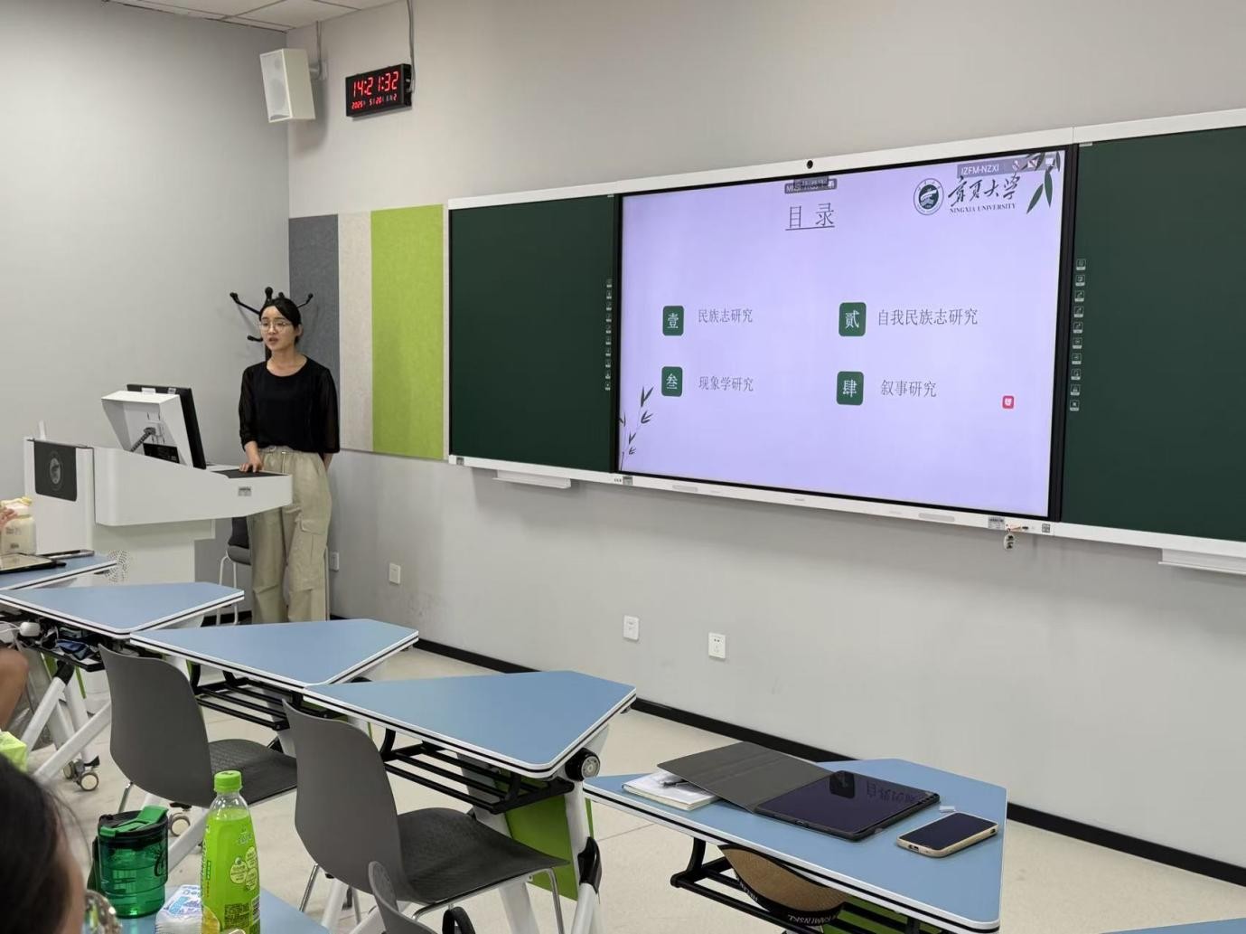 在郭季虹博士的组织下,师生积极互动,围绕AI技术的优势与挑战展开热烈讨论。研究生从民族志、自我民族志、叙事研究和现象学等多元研究方法入手,探索人工智能技术的创新应用。各研究小组通过系统的理论分析、实证案例和实践路径,生动展现了跨学科研究的学术潜能。
