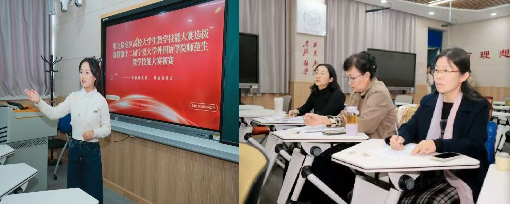 于贺兰山校区兰山一教C201、C202、C203教室顺利举办第九届全区高校大学生教学技能大赛选拔赛暨第十二届成人抖阴