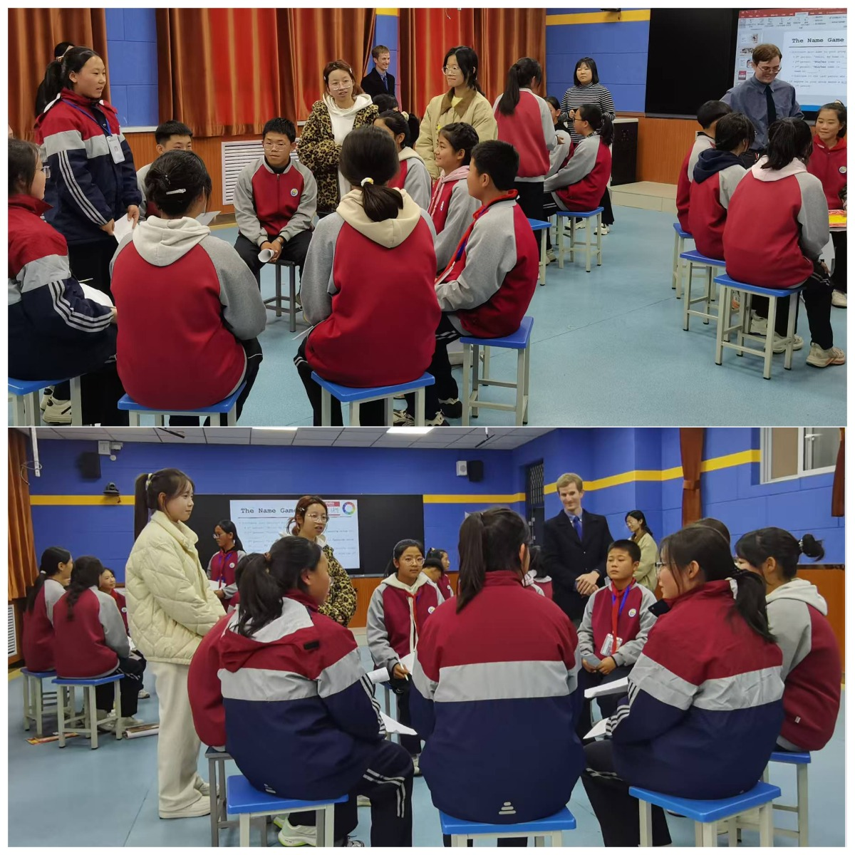 精心选派的外教与师范生组成教学团队,为闽宁二中的30名学生带来一堂生动活泼、互动充分的“沉浸式”英语课。课上师范生积极发挥专业特长,与外教共同设计贴近学生生活的情景对话,有效激发乡村学生对英语学习的兴趣。从基础的问候互动到围绕“兴趣爱好”等话题的小组讨论,师范生耐心引导学生参与,细致纠正发音,不断鼓励学生克服紧张情绪、勇于开口表达。中学生们从最初的腼腆拘谨逐渐转变为踊跃举手、积极互动。