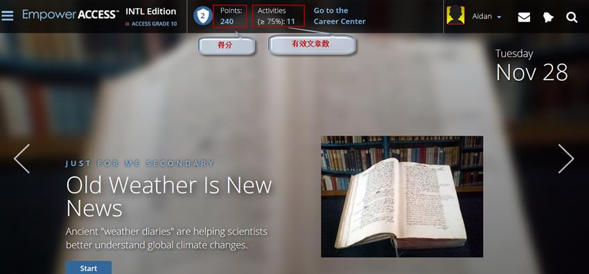 阅读是我们了解和获取知识的重要手段和最佳途径。大量地阅读英文原版材料不仅有助于阅读能力的提高,更着力培养学习者的英文听、说、写的能力。为鼓励学生充分利用Achieve 3000进行阅读,爱上阅读,同时提高语言综合能力,成人抖阴