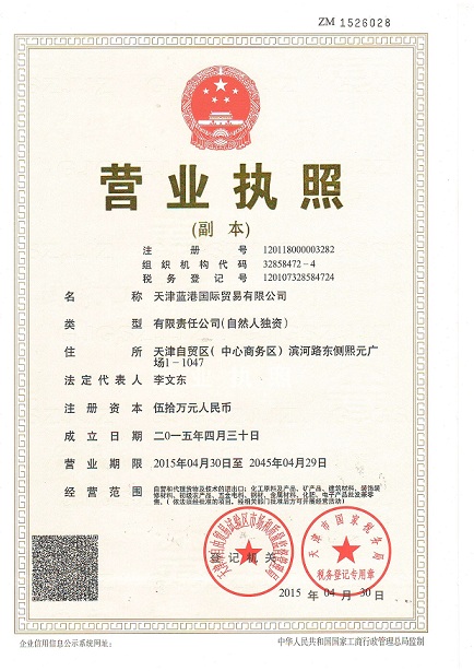 天津蓝港国际贸易有限公司营业执照