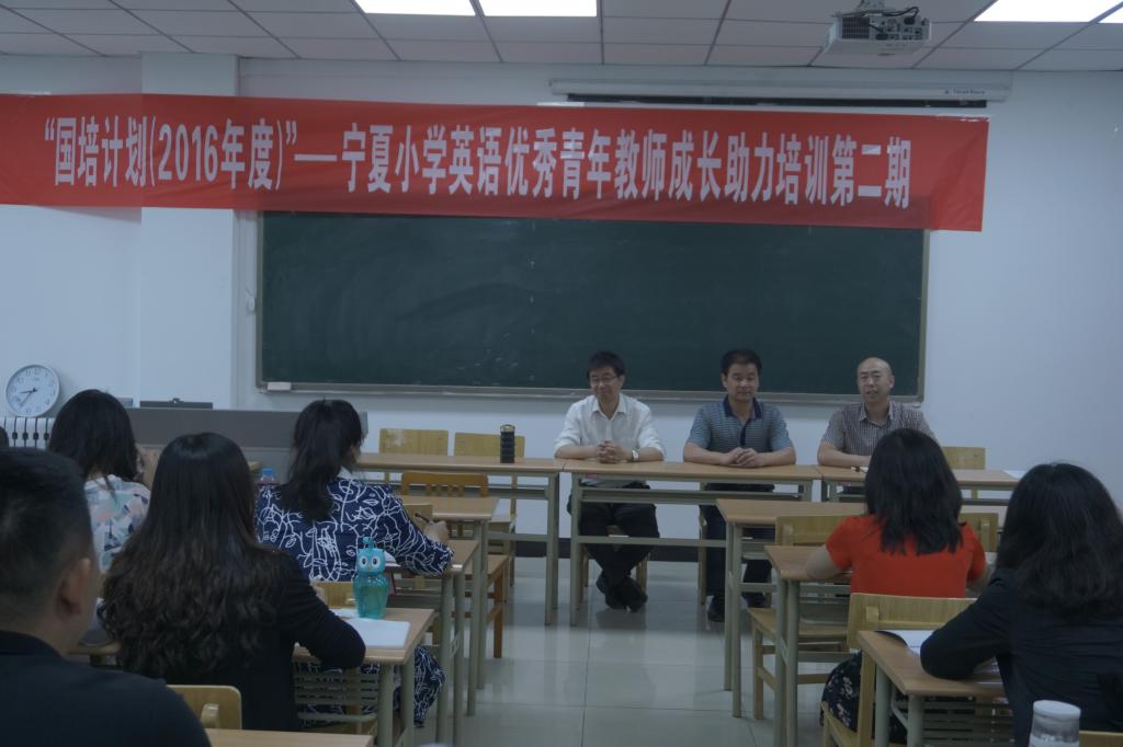 举办了“‘国培计划(2016年度)’第二期宁夏小学英语优秀青年教师成长助力研修”培训班。学院党委书记拜发奎,学院院长、项目首席专家周震教授出席开班仪式并做了讲话。开班式由原项目执行负责人李文军博士主持。